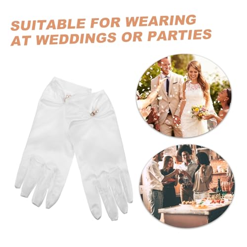 Elegant Vintage White Wedding Gloves for Brides Pearl Gloves Bridal Satin Short 3