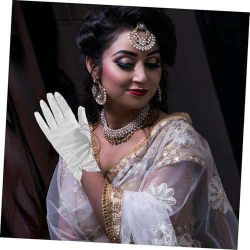 Elegant Vintage White Wedding Gloves for Brides Pearl Gloves Bridal Satin Short 4