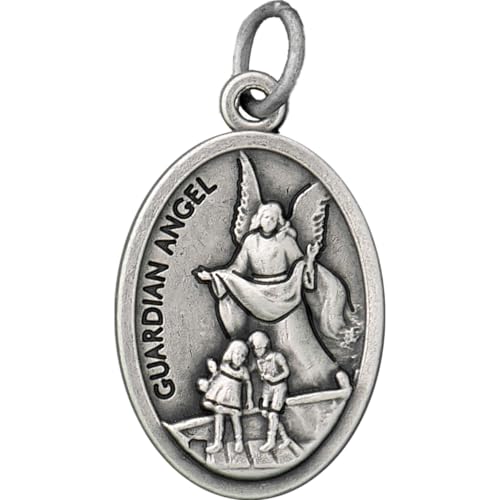 • ST. MICHAEL AND GUARDIAN ANGEL MEDAL – BULK PACK OF 100 – 1” silver-plated medals expertly crafted in Italy from durable zinc alloy, featuring intricate details of St. Michael and the Guardian Angel, symbols of protection and faith.