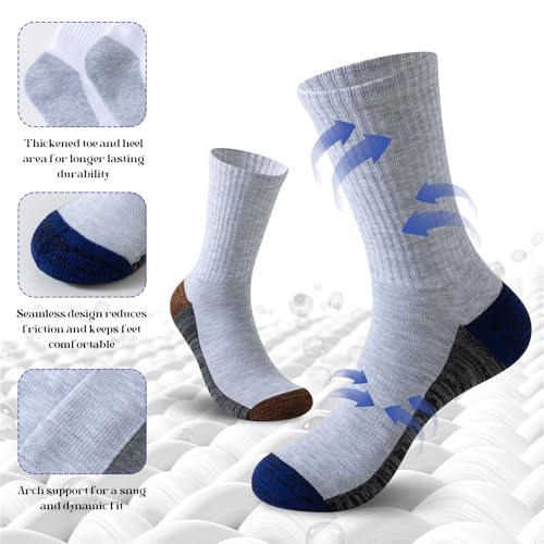 5 Pairs Stretchy Men's Crew Socks, Work Socks with Reinforced Toe&Heel, Arch Support, Terry Cushioning and Absorption