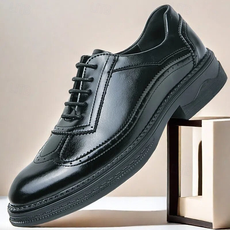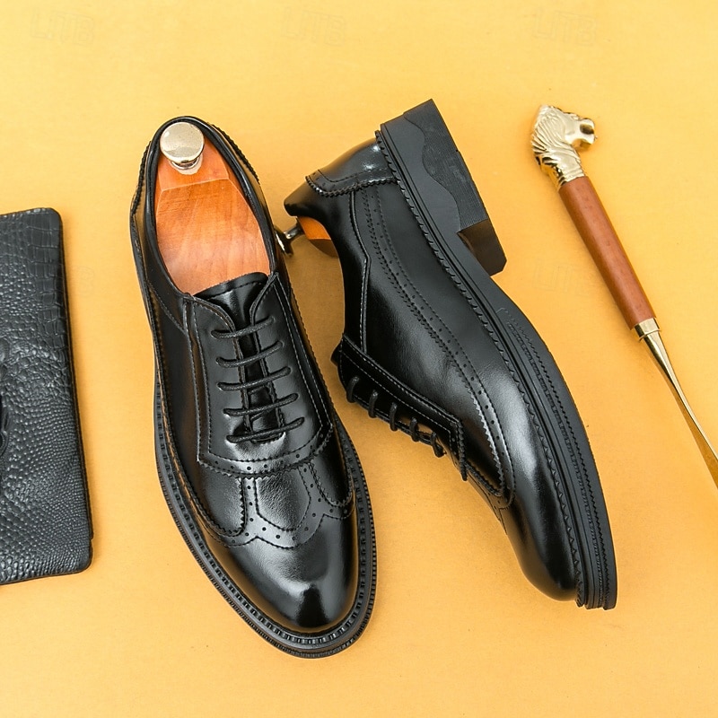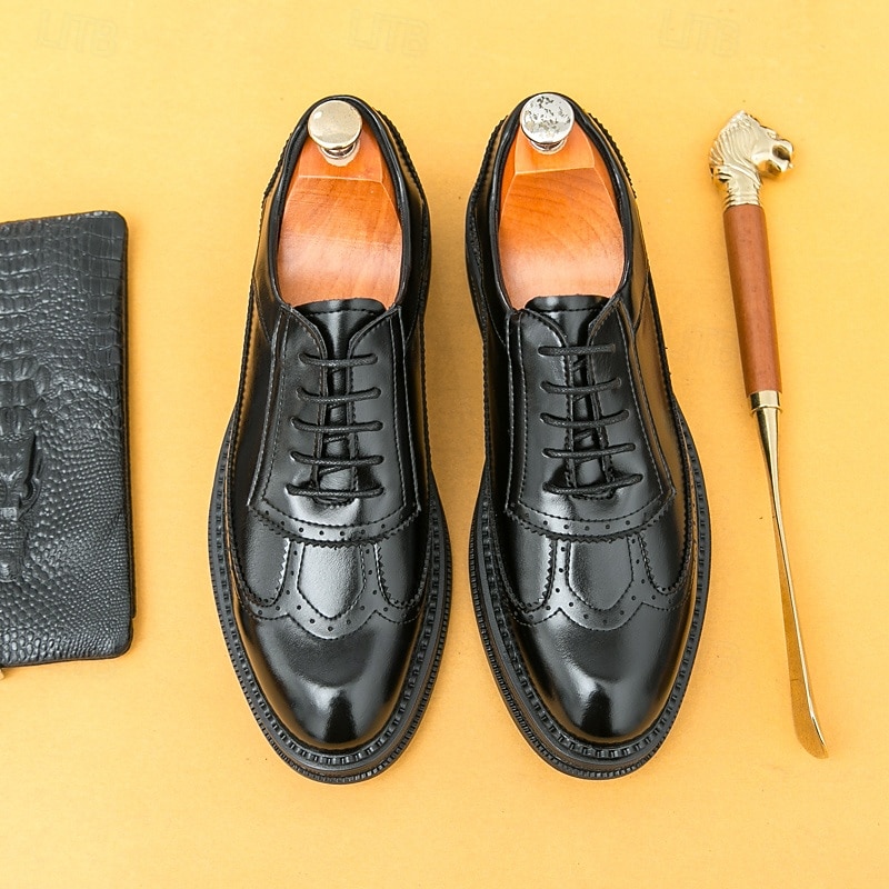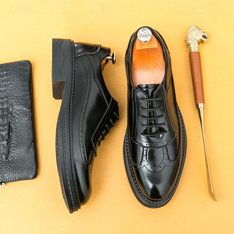 HOT ! Men's Red-Brown Oxford Shoes - Faux Leather with Brogue Perforation Detailing, Classic Formal Footwear for Men, Perfect for Weddings, Business Meetings & Special Events