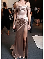 More information about Gold Lurex Stretch Fabric Off Shoulder Mermaid / Trumpet Stretch Jersey Evening Gown Elegant Dress Formal Wedding Sweep / Brush Train with Ruched Slit 2025