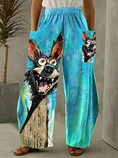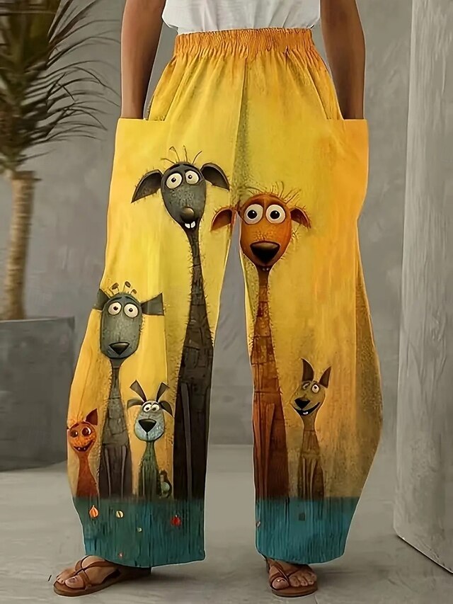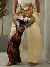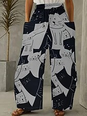 More information about Women's Wide Leg Chinos Pants Trousers Vacation Fashion Casual Full Length High WaistPantsHalloween Cat Pocket Elastic Waistband Printing Comfy Soft Comfortable Stretchy Outdoor Street Black Yellow