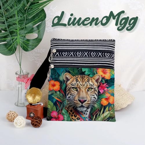 HOT ! Floral Cheetah Messenger Bag Small Ethnic Pattern Printed Adjustable Strap Crossbody Zipper Bag Floral Cheetah Phone Bag Wallet Cute Shoulder Handbag for Women Friends -1