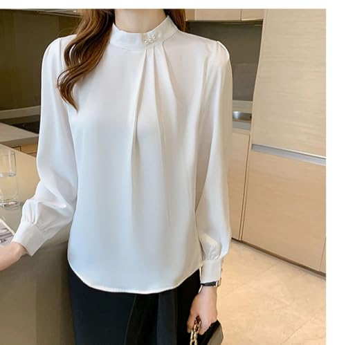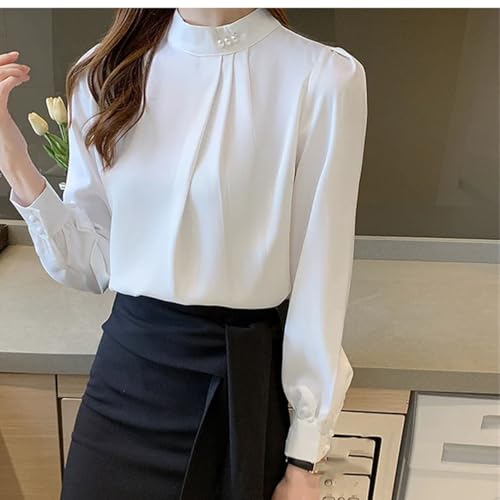 Women's Satin Business Blouses Long Sleeve Beading Stand Collar Workwear Office Shirt 5