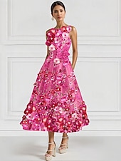 More information about A-Line Floral Cocktail Elegant Dress Formal Gown Wedding Guest Ankle Length Sleeveless Crew Neck Satin with Embroidered Pocket