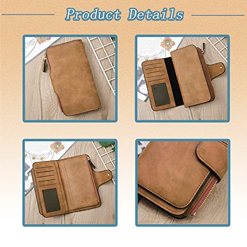 Long Wallet for Women, Women Bifold Wallet, Large Trifold Clutch Wallet for Women Extra Capacity, Medium Size Fashion Pu Leather Wallet (Brown) 5