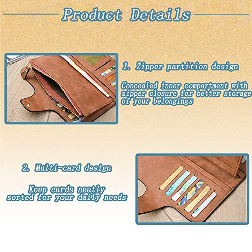 Long Wallet for Women, Women Bifold Wallet, Large Trifold Clutch Wallet for Women Extra Capacity, Medium Size Fashion Pu Leather Wallet (Brown) 3