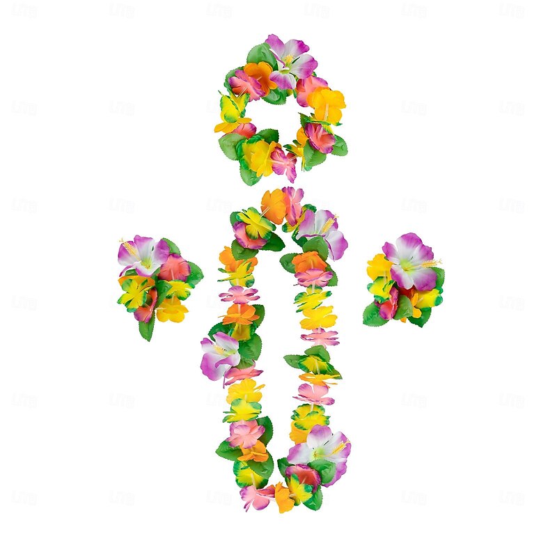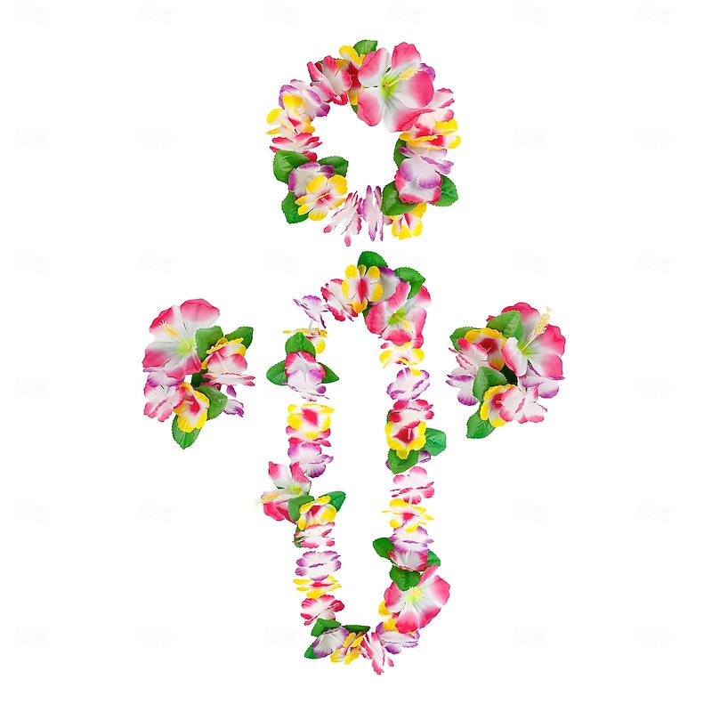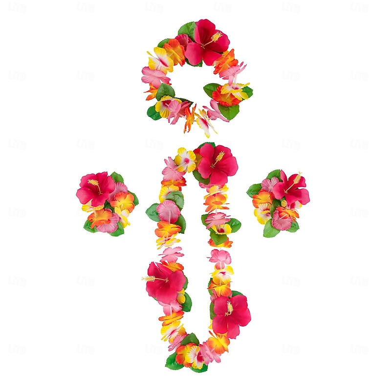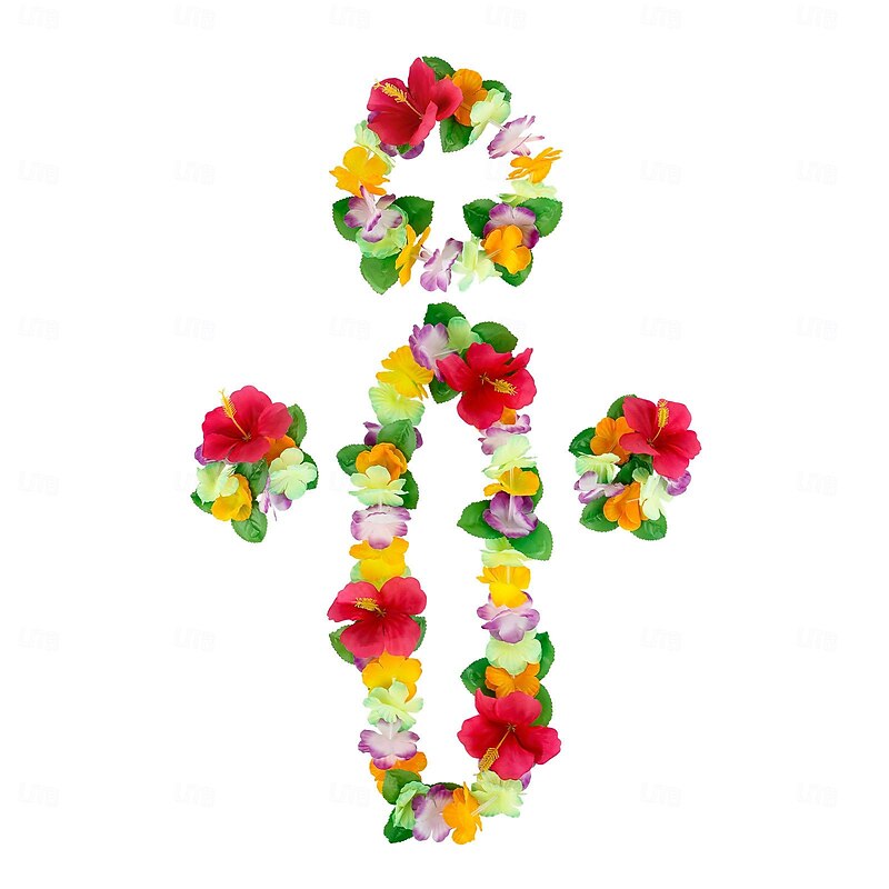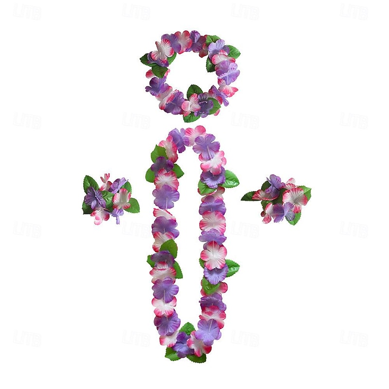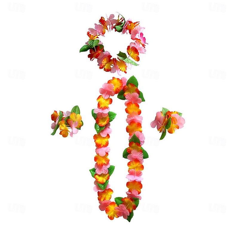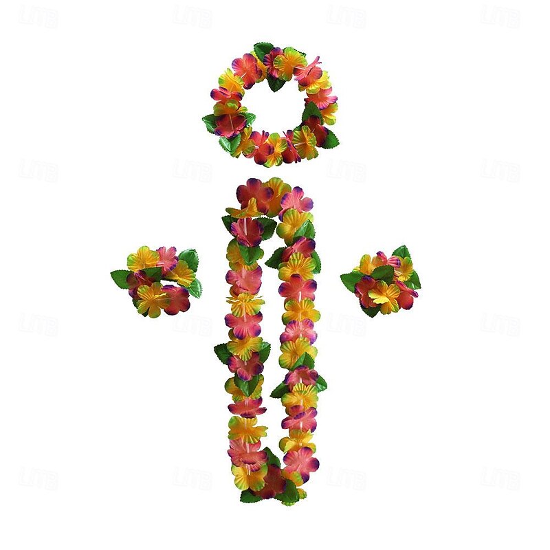 Party Hawaiian Wreath 12 Color Petal Necklace Headband Bracelet Four Piece Set For Holiday Event Dressing Accessories 1