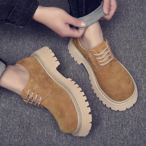 Men's Suede Platform Chunky Heel Oxford Shoes Classic Lace Up Round Toe Non-Slip Lug Sole Block Heel Dress Derby Shoes for Business Work Wedding Party 7
