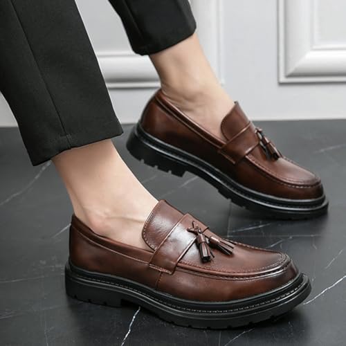 Mens Leather Slip-On Platform Dress Tassels Loafers Anti-Slip Low Top Round Toe Chunky Penny Shoes for Work and Daily Casual Wear 6