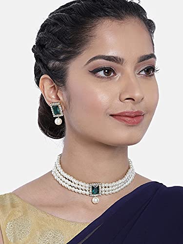 I Jewels Indian Wedding Bollywood Stone Pearl Choker Necklace With Earring Jewellery Set For Women 1