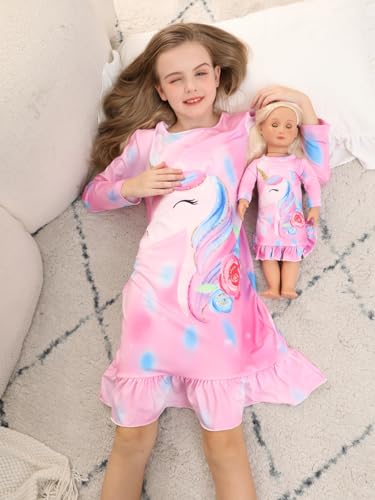 Bow Dream Toddler Girls Casual Dress and Matching American Girl Doll Clothes for Girls Cute Cartoon Kids Dress Party Birthday 4