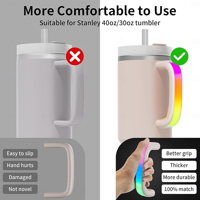 HOT ! 6 Colors LED Light-Up Tumbler Handle for Stanley 40oz/30oz, Comfortable Water Bottle Handle for Stanley Tumbler-Compatible with 40oz Stanley Cup Accessories, Use for Outdoor, Party, Home