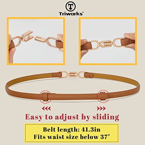 Women Leather Skinny Belt 2 Pack Adjustable Belts Ladies Thin Waist Belts for Dresses 4