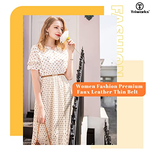 • Adjustable Size - This leather thin belt is fully adjustable. 2 sizes for you to choose from: One fits waist below 37", the other fits waist below 43". You can easily adjust the size by sliding the belt loop, the flexible size allows you to have no worries, easily shape your waist, show your good figure, and make you feel more comfortable.