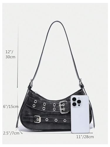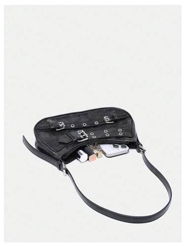 GORGLITTER Women's Buckle Shoulder Bag Y2k Leather Handbags Purse Purse PU Leather Clutch Handbag 2