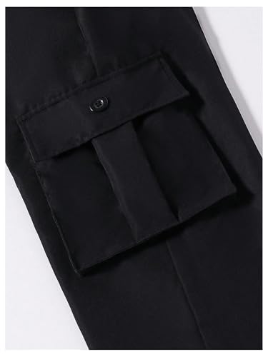 OYOANGLE Boy's Elastic Waist Straight Leg Cargo Pants Street Solid Long Trousers with Pockets 4