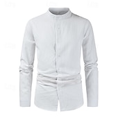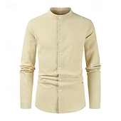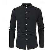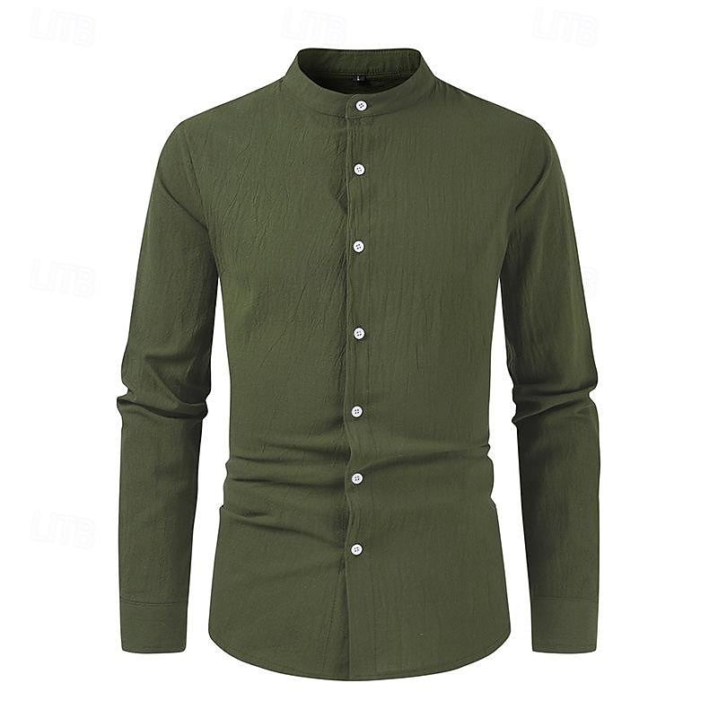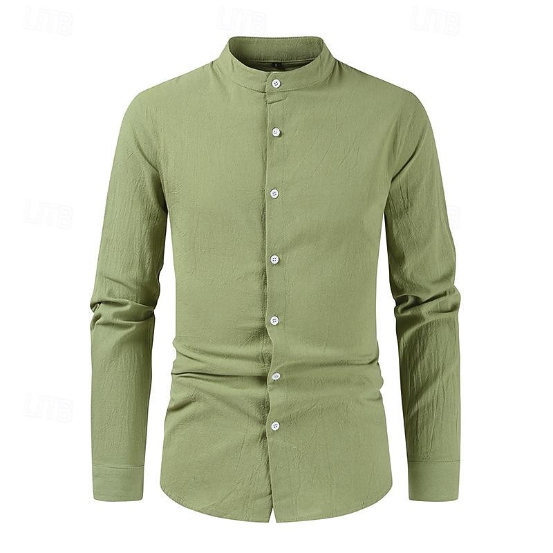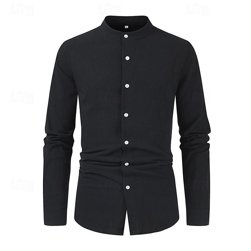 Highlights [Fabric:] This men's shirt is crafted from a high-quality linen cotton blend, ensuring a comfortable and breathable wear. The fabric provides a soft texture with durability, ideal for both warmer days and all-day use. [Fit:] The shirt features a slim fit design that contours the body without feeling constrictive. It offers a tailored appearance that remains comfortable and flattering, perfect for a modern, sophisticated look. [Design Highlights:] The shirt includes a stand collar that adds a contemporary twist to the classic button-down style. It is designed with a full button placket adorned with contrasting white buttons. The long sleeves with buttoned cuffs provide an adjustable fit and add elegance to the overall minimalist design. [Occasions:] Suitable for a wide range of occasions, this casual yet stylish shirt is perfect for vacations, holidays, and daily casual outings. It's a versatile choice for streetwear or a relaxed Hawaiian holiday look. [Size Range:] Available in a range of sizes from S to 3XL, the shirt offers a comfortable fit for various body types, allowing you to choose the size that best suits your preferences. This piece is a must-have for any modern wardrobe, combining elegance with practicality for any season.