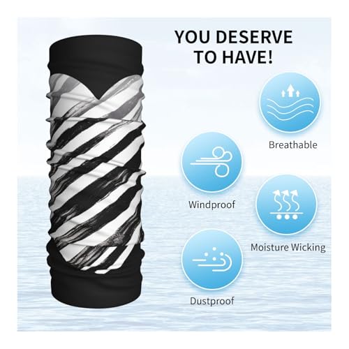 • Sun Protection&Dustproof: In Hot Days, Black And White Striped Heart Print Summer Bandana Face Cover Wicks Away Moisture Faster And Dry Quickly, Protecting You From Being Over Exposed To The Sun. In Cold Days, Neck Warmer Is An Extra Layer Of Warmth For Your Ears, Nose, Mouth, Head, Hand And Neck.