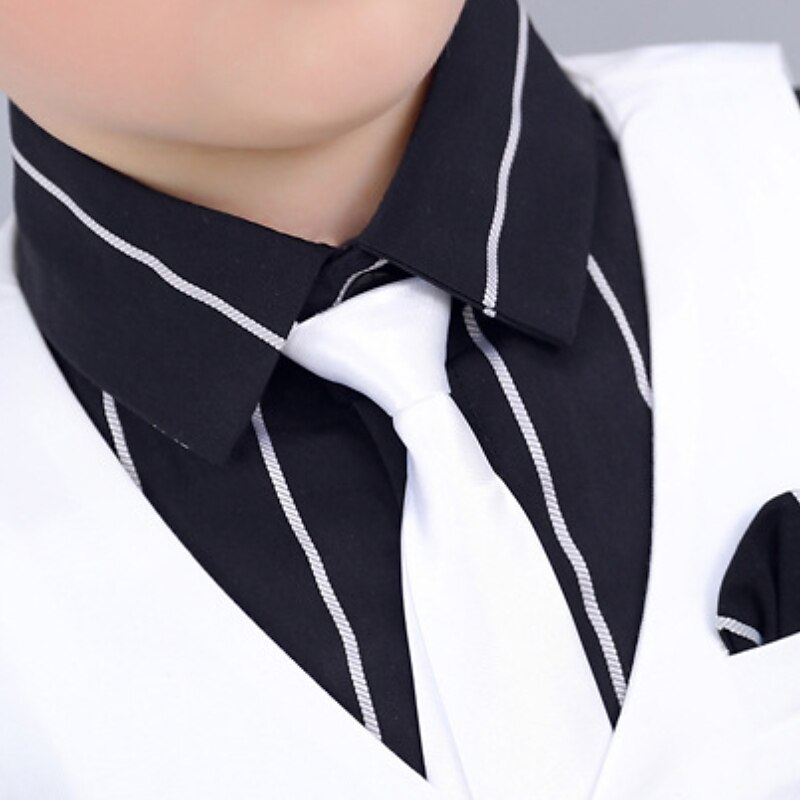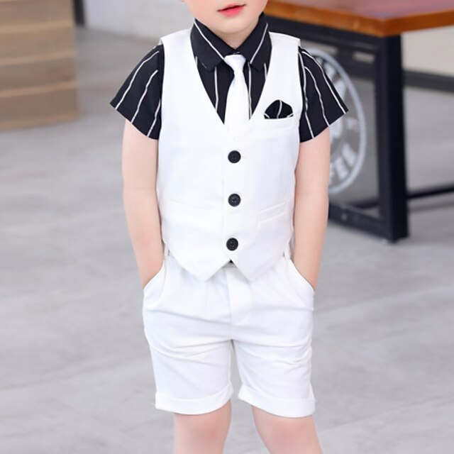 3 Pieces Ring Bearer Suit Boys Kids Shirt & Shorts Casual Fashion Basic Stripe Black White Gray Cotton 4