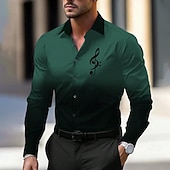 [Design Highlights]: Featuring a unique gradient print, this shirt transitions from cream to light brown, accompanied by a striking treble clef motif on the chest for a musical flair. The button-down style is adorned with elegant, discreet buttons that enhance its refined appeal.