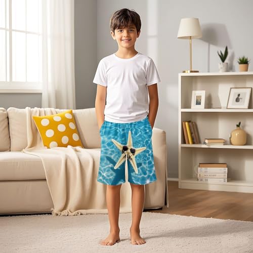 HOT ! Sunglasses Starfish Sleep Shorts Summer Pajama Shorts Elastic Waist Sleep Bottoms with Pockets 6-14 Years