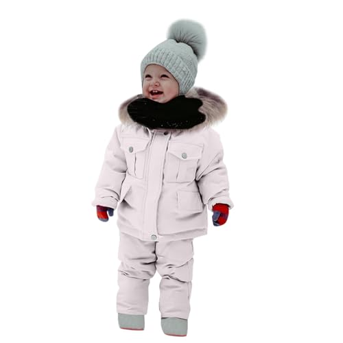 Kids 2-Piece Snowsuit Toddler Warm Hoodie Down Jacket Winter Coat + Snow Bib Pants Ski Suit Windproof Snow Suit Outfits 2