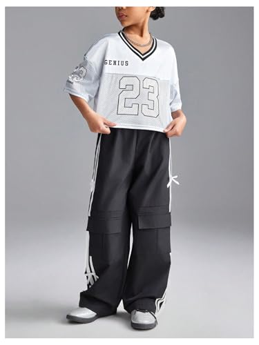 HOT ! Floerns Girl's Number Jersey Shirts V Neck Oversized Half Sleeve Y2k Crop Tee Tops