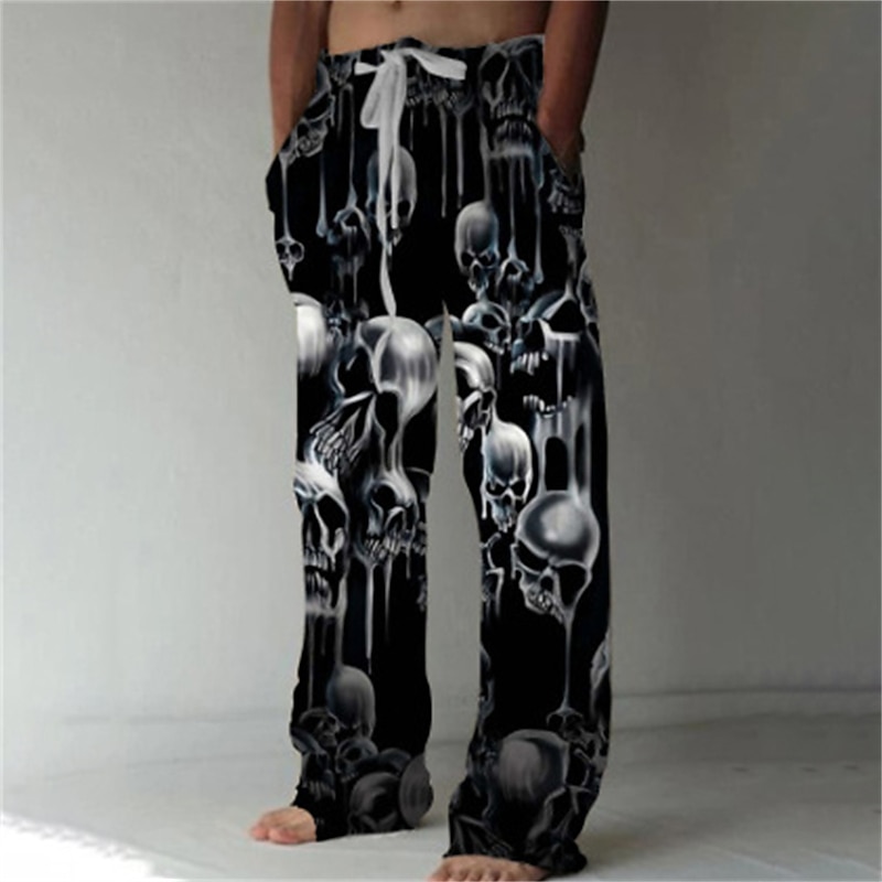 Men's Trousers Summer Pants Beach Pants Drawstring Elastic Waist Front Pocket Graphic Skull Comfort Soft Casual Daily Fashion Designer 1 2 10