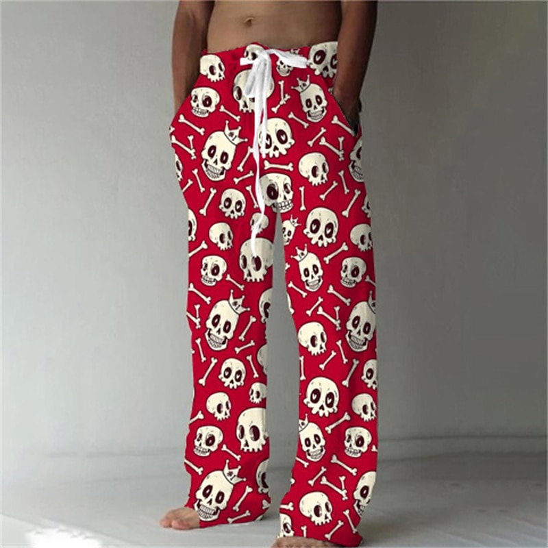Men's Trousers Summer Pants Beach Pants Drawstring Elastic Waist Front Pocket Graphic Skull Comfort Soft Casual Daily Fashion Designer 1 2 7
