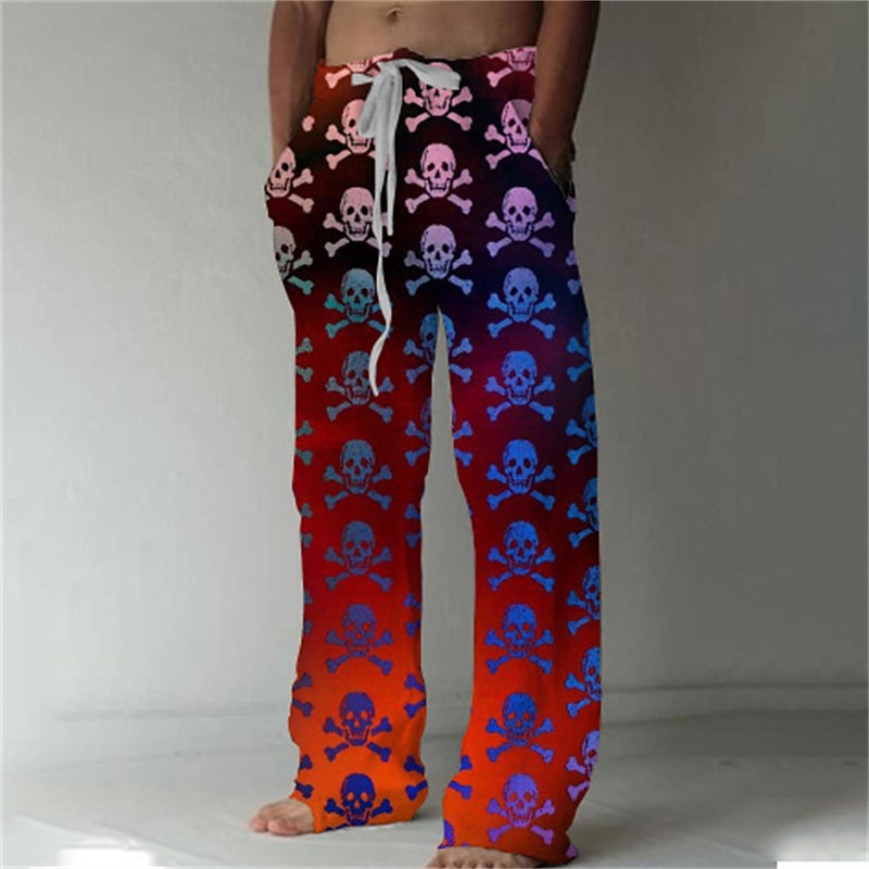 Men's Trousers Summer Pants Beach Pants Drawstring Elastic Waist Front Pocket Graphic Skull Comfort Soft Casual Daily Fashion Designer 1 2 19