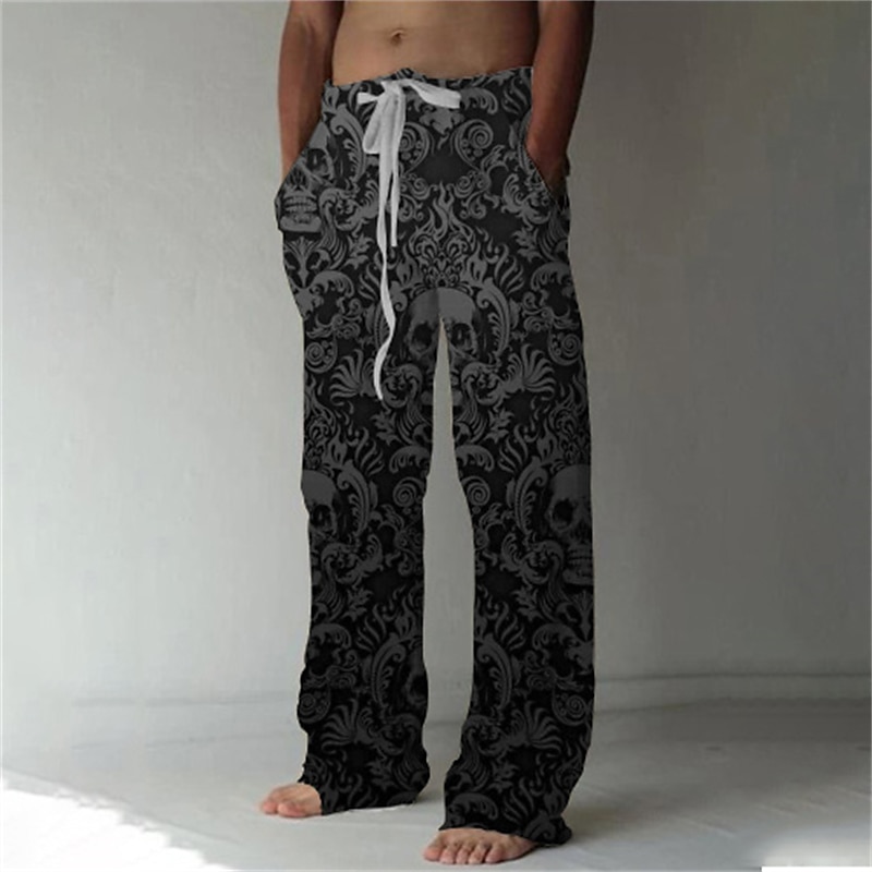 Men's Trousers Summer Pants Beach Pants Drawstring Elastic Waist Front Pocket Graphic Skull Comfort Soft Casual Daily Fashion Designer 1 2 11