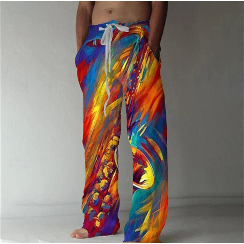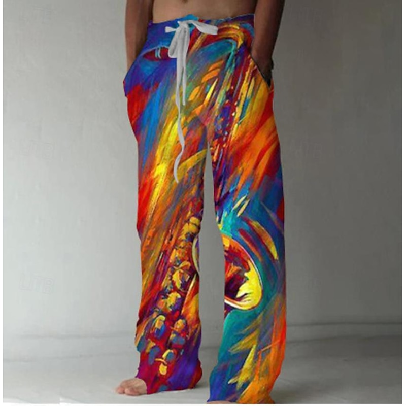 Highlights - Enjoy the convenience of both drawstring and elastic closure with our Fly Type pants. - Made of lightweight, breathable Polyester with a relaxed linen-like texture, perfect for vacations and lounging at home. - Our straight-leg trousers feature side pockets and a baggy style, with eye-catching 3D digital printing technology for a unique and fun design. - These versatile pants are perfect for a range of activities including yoga, jogging, sports, and even as casual wear for school, travel, and music festivals. - Please refer to our SIZE CHART before purchasing and allow for slight manual measurement deviation of 1cm~3cm. With our Fly Type pants, enjoy designer comfort in style.