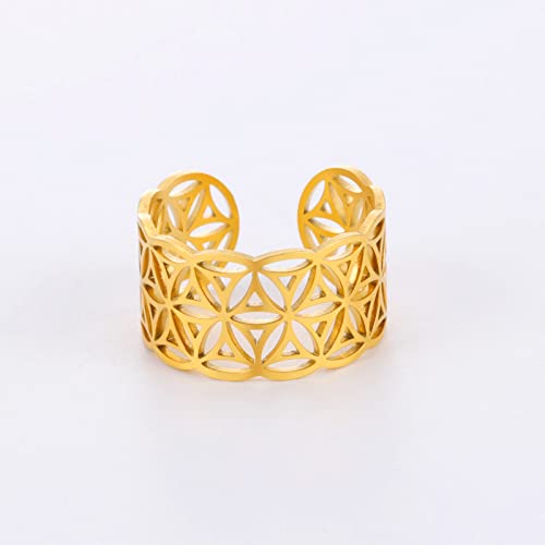 TEAMER Stainless Steel Hollow Flower Ring Boho Adjustable Open Finger Rings Fashion Jewelry Wedding Ring for Women 7