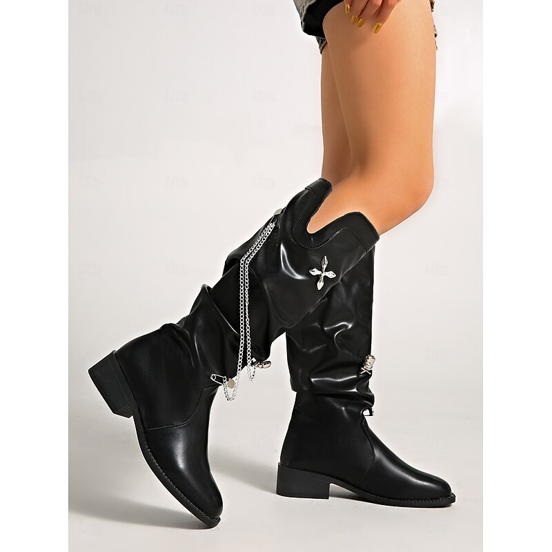 More information about Women's Boots Slouchy Boots Daily Chain Block Heel Pointed Toe Casual Faux Leather Loafer Black