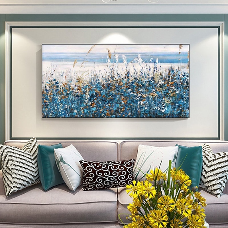 More information about Oil Painting Handmade Hand Painted Wall Art Abstract Plant Floral Blue Lavender Home Decoration Decor Rolled Canvas No Frame Unstretched