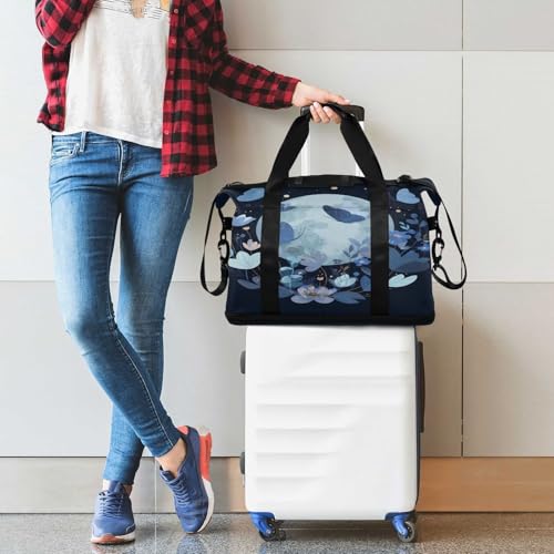 HOT ! Butterfly Moon Blue Travel Duffel Bag for Women Men Gym Bag with Shoe Compartment Wet Pocket Carry On Weekender Overnight Bags for Travel Weekend Getaway