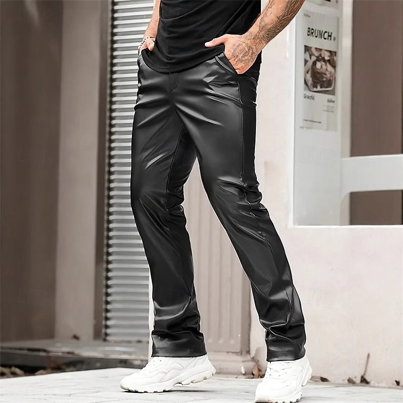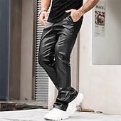More information about Men's Trousers Summer Pants Faux Leather Shorts Pocket Plain Comfort Breathable Vacation Daily Holiday Stylish Athleisure Black