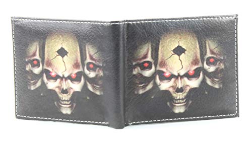 HOT ! Li Vegan Leather Wallet for Men - Men's Skull Print Slim Bifold Wallet Top-Flap 2 ID Window with 7 Cards, 2 Inner Slots & 2 Cash Compartments - Timeless Men's Wallet with Gift Box (Black)