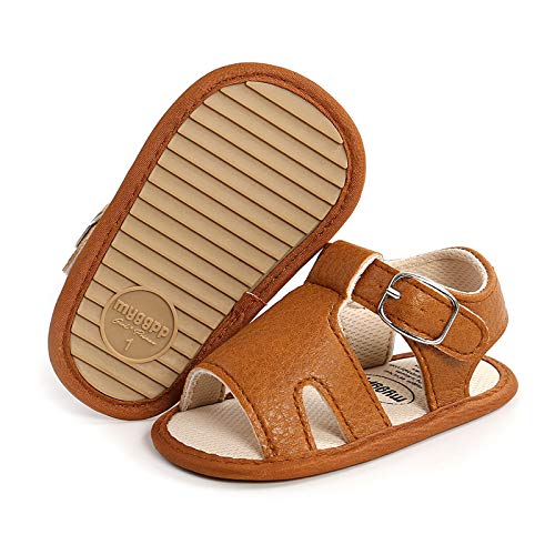 Baby Boy and Unisex Sandals Shoes for Infant/Toddlers First Walkers Anti-Slip Soft Sole Flat Shoes (Brown, 0-6 Months) 6