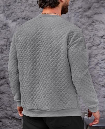 • QUILTED SWEATSHIRT: Men's long sleeve pullover feature a perfect combination of fall and modern twist. It's a soft and warm fall fashion. Make a statement with the loose fit design of this quilted texture sweatshirt and complete your stylish ensemble.