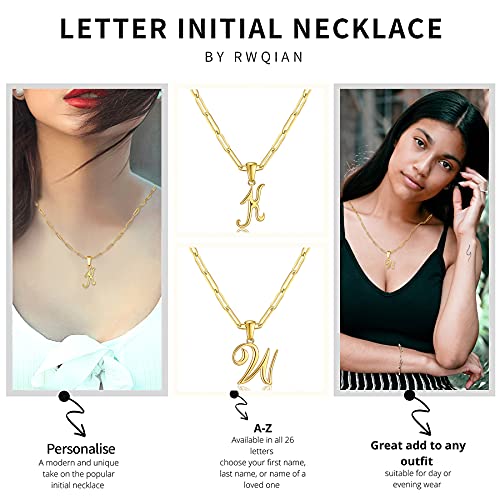 HOT ! RWQIAN Women Personalized Large Letter Necklaces 18K Gold Plated Stainless Steel Initial Necklace Paperclip Chain Letter Pendant necklaces for Women Girls Jewelry Gifts