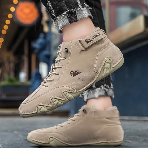 Men Outdoor Work Snow Boots Cold Weather Casual Shoes Leather Lace up Boat Plush Rubber Sports
