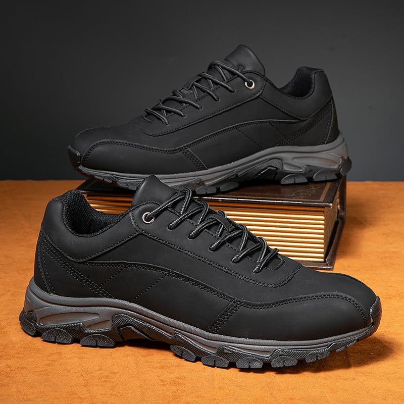 DESESE Men's Waterproof Hiking Shoes Non-Slip Breathable Lightweight Sneakers for Outdoor Trekking Walking Casual Leather Running Shoes 7