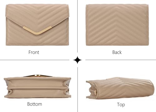 • ②【2 Detachable Straps】 "This Stylish quilted envelope crossbody handbag comes with 1 detachable short chain strap(9.5” drop height) and 1 adjustable wide guitar strap(13.7” to 23.5” drop height), allowing you to switch between casual and elegant looks flexibly. Whether you prefer a crossbody purse, shoulder purse or hand bag style, this versatile design offers options to suit your preferences."