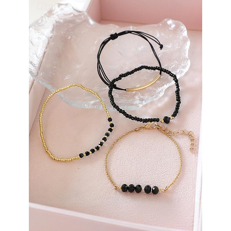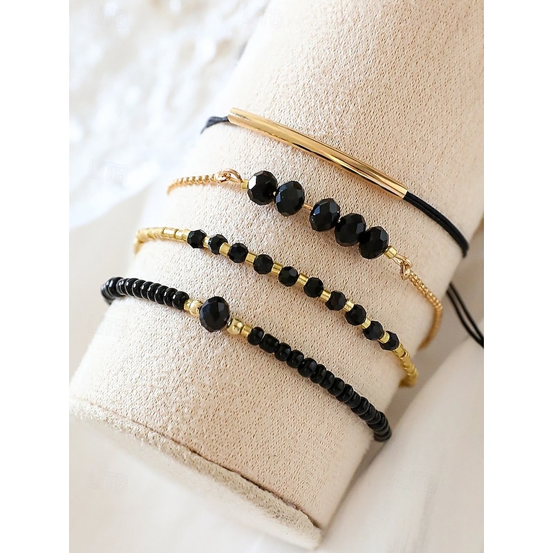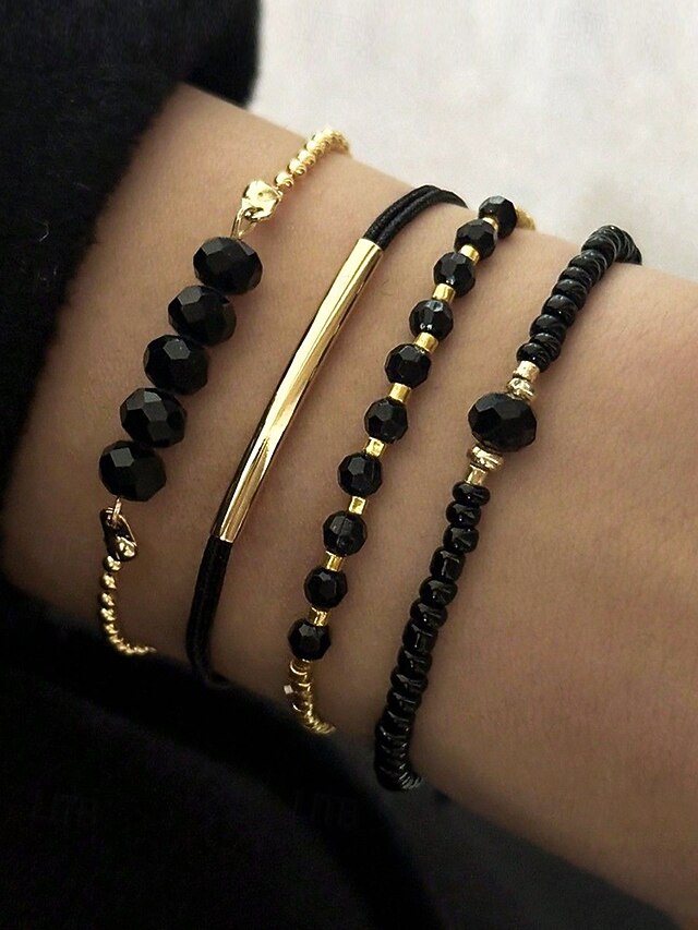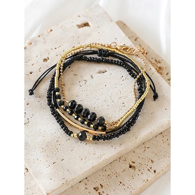 $9.99 - Women's Bohemian black beaded bracelet set, Gold embellishment, Adjustable, Fashionable and trendy jewelry, Suitable for daily wear, Travel and party wear 2025. Shop for cheap Women's Bracelet online? Buy at lightinthebox.com on sale today!