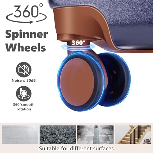 • 【360° Dual Spinner Wheels】The luggage's silent wheels have undergone rigorous load rolling tests, enabling smooth gliding on cobblestones, carpets, and slopes without shaking or getting stuck. Even in crowded airports, the luggage moves smoothly.