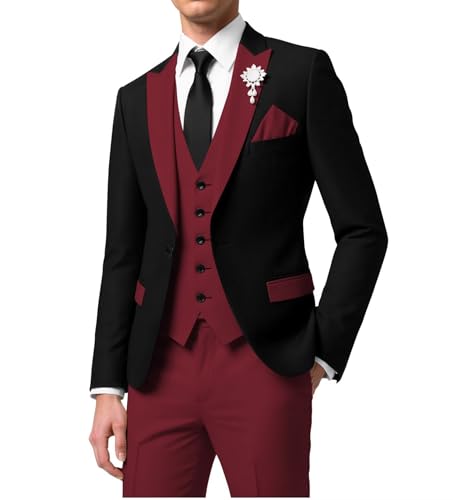 • 【Color - Block Tailoring】This men's suits regular fit 3 Piece breaks traditional single - tone. Bold black & bright (beige/green/blue/orange/red/brown/pink/white) blocks on peak lapels, vest, pockets of the tuxedo suit set. With crystal/pearl brooch, no extra boutonniere needed. Boosts elegance for galas/ceremonies, making the slim fit suit for men stand out.