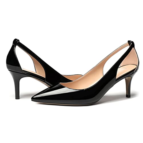 MERRORI Women's Pointed Toe Solid Slip On Patent Stiletto Mid Heel Pumps Shoes 2.5 Inch 1